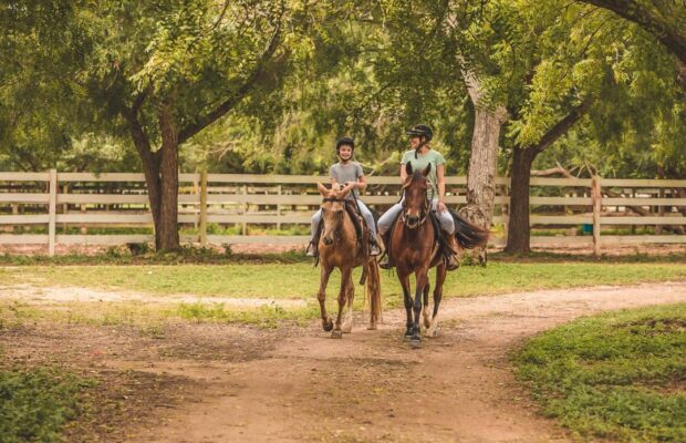 Centro ecuestre con cabalgatas guiadas y clases de equitación.