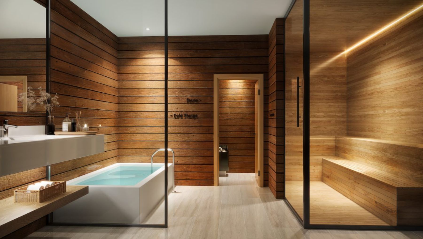 • Wellness center: steam showers, sauna, cold plunges